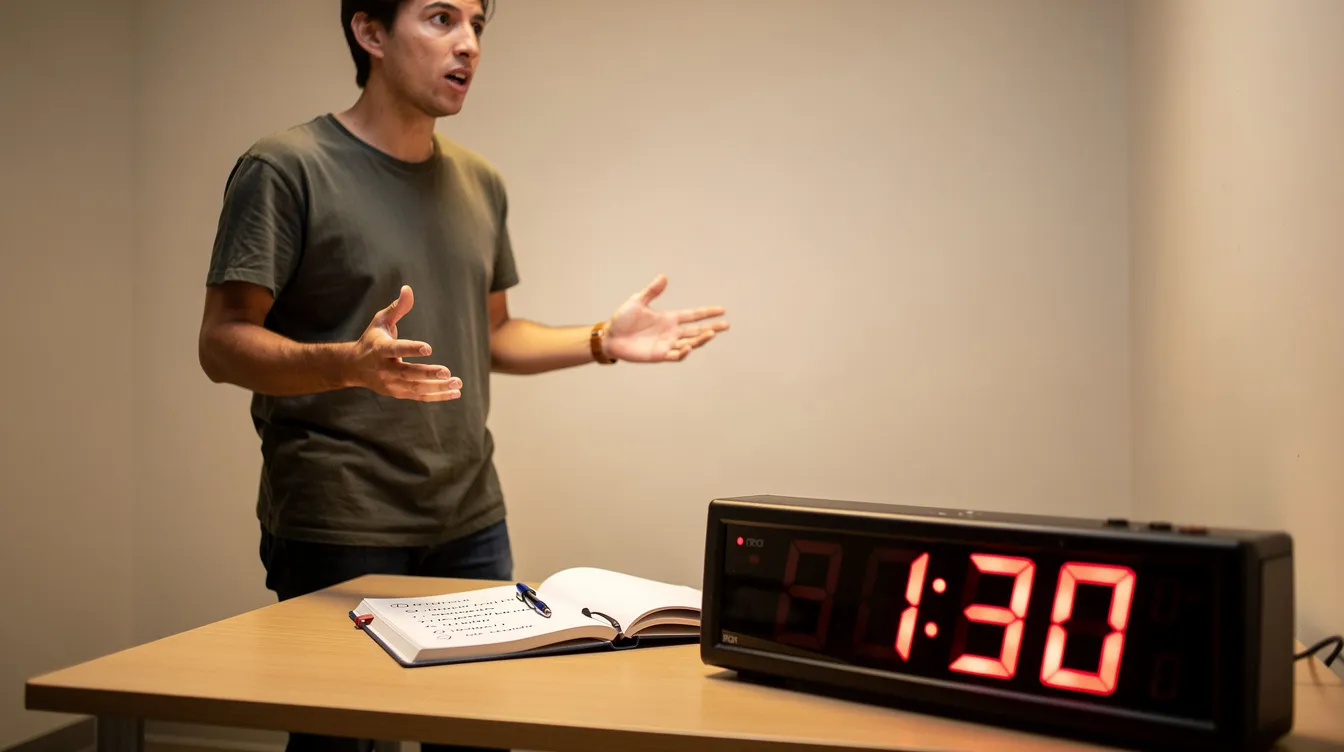 Use a phone timer set to 30 seconds prep + 90 seconds response. This builds the habit of working within the actual time limits.